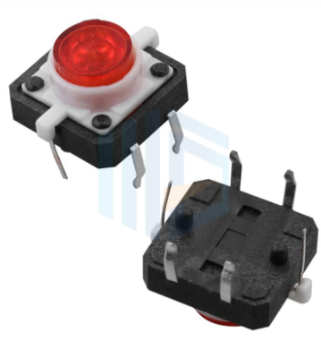 帶燈輕觸開關(guān)是一種將電路控制與狀態(tài)指示功能深度集成的電子元件,廣泛應(yīng)用于消費(fèi)電子、工業(yè)設(shè)備及智能家居等領(lǐng)域。其核心結(jié)構(gòu)由底座、金屬彈片、端子、LED組件及耐高溫塑膠外殼組成,部分型號(hào)采用SMT貼片或臥式直插設(shè)計(jì)以實(shí)現(xiàn)緊湊化布局。